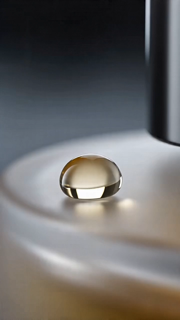 A luxury skincare product commercial, a frosted glass serum bottle standing on a reflective black surface surrounded by soft mist and floating water droplets, the bottle slowly rotates as a beam of light sweeps across the logo, macro close-up of liquid texture inside the bottle, then a smooth orbit shot reveals elegant ripples spreading outward, glossy highlights, premium beauty advertising aesthetic, clean composition, refined pacing, cinematic studio lighting, realistic reflections, polished surfaces, shallow depth of field, sophisticated and minimal, no label distortion, no duplicate bottles, no warped cap, ultra-realistic, commercial-grade.