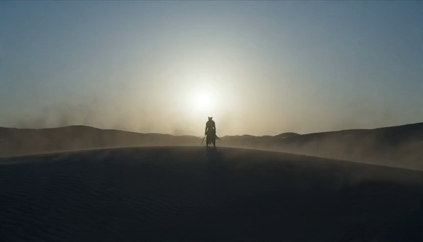 15-second Original Desert Martial Arts Short Film: A black cat warrior in light armor stands alone in a desert where yellow sand is flying all over the sky, facing the pursuers. The shots combine slow motion and fast editing; under backlight, the yellow sand rolls like ink mist. The character's movements are elegant yet ferocious, with tattered but flowing robes. Holding a short weapon, he shuttles and counterattacks at high speed. The overall tone is cold, lonely and oppressive, with high-end colors and obvious shallow depth of field, just like a high-quality oriental martial arts movie.
